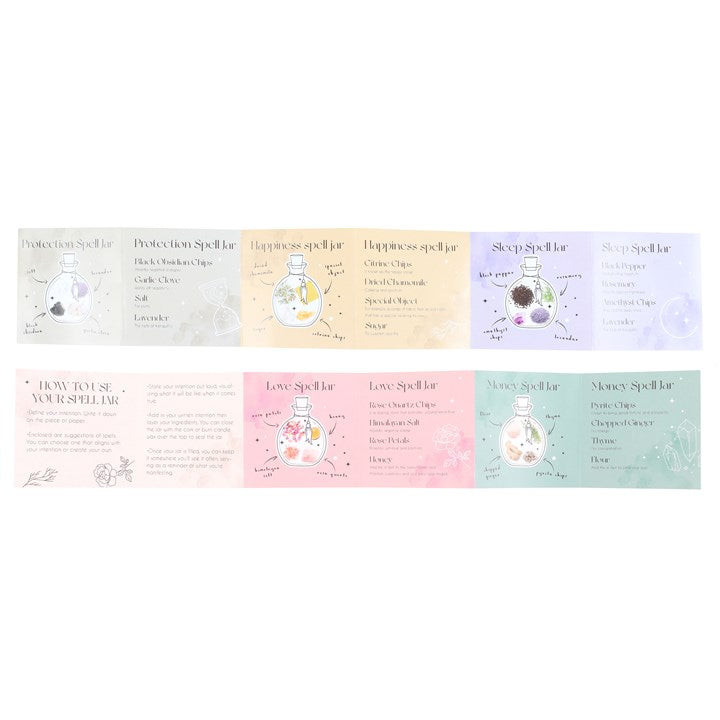 Whether it's a spell for love, luck, protection or any other desire, this spell jar can be used as physical representation to help amplify energy and make manifestations a reality. Fill the jar with elements which align with the spell being created and store the jar somewhere as a daily reminder to help bring focus on the spell. This glass spell jar comes with a handy spell recipe booklet making it a thoughtful gift idea.