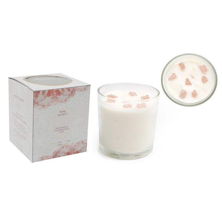 12cm Rose Eucalyptus Candle with Rose Quartz Crystals