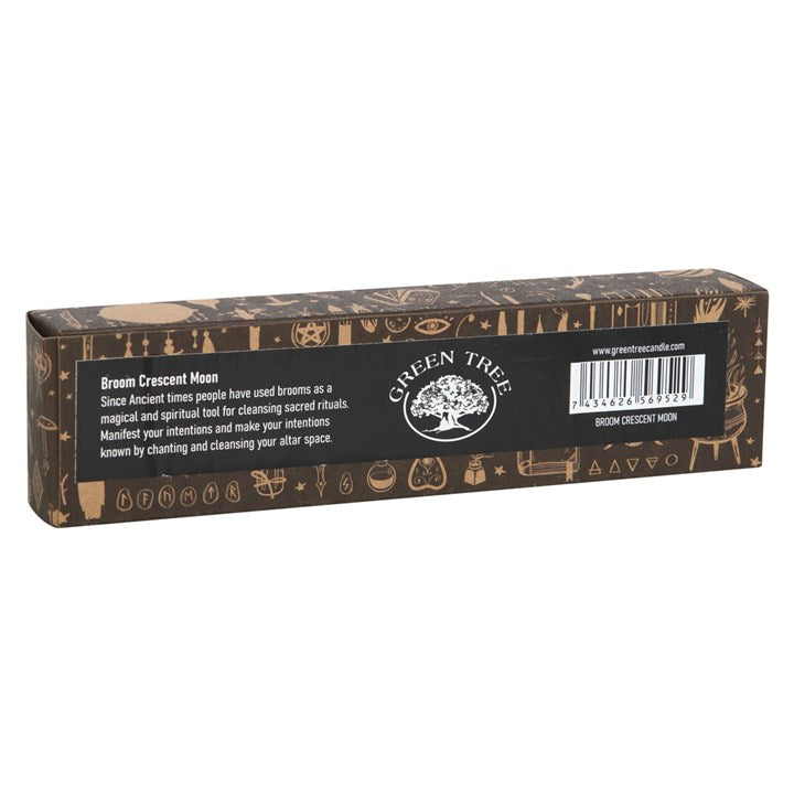 This besom broom, also called an altar brush, is a traditional tool used for both practical and spiritual purposes. Whether brushing away dust from within the home or cleansing an altar space, this small broom will sweep away all unwanted dirt and negative energies. Bound with jute string and finished with a metal crescent moon charm.