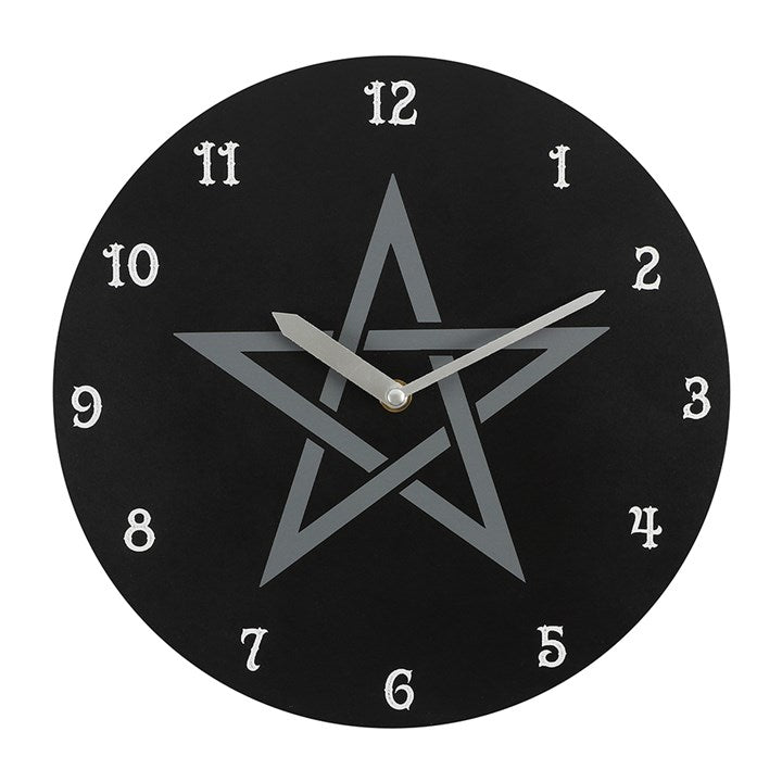 Add a touch of the magical and mystical to your home decor with this black pentagram clock. Requires 1 x AA batteries to operate. Product Dimensions: H28cm x W28cm x D1cm Packaged Dimensions: H30cm x W30cm x D4.5cm