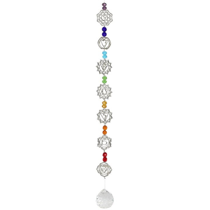 Bring the power of the seven chakras into your home with this hanging crystal that features each of the symbols and its associated colour. Product Dimensions: H47cm x W3cm x D3cm Packaged Dimensions: H3.2cm x W11cm x D10cm
