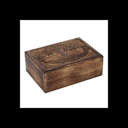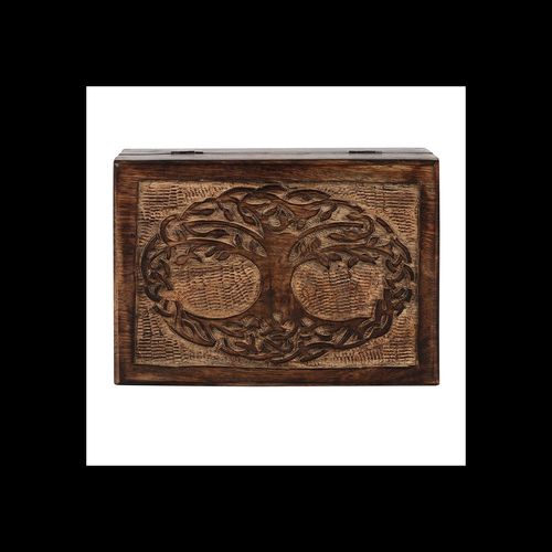 A hinged box made from mango wood featuring a handcarved Tree of Life design on the lid. This box is the perfect size for storing photographs and other meaningful treasures. 5x7 inches. Product Dimensions: H6.5cm x W18cm x D13cm Packaged Dimensions: H7cm x W19cm x D13.5cm