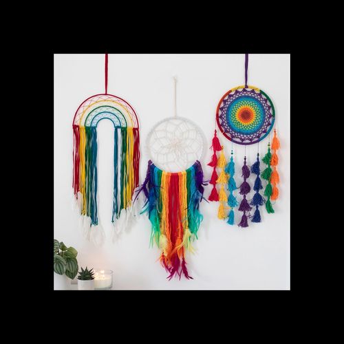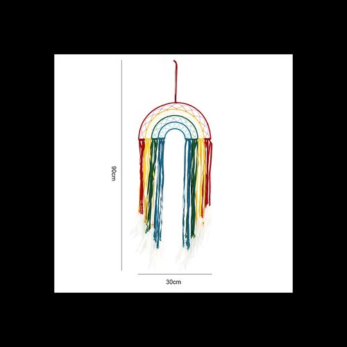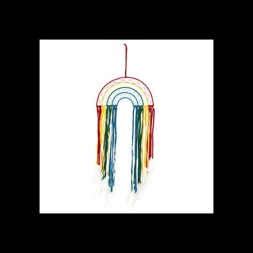 This modern dreamcatcher is shaped like a rainbow and will add a cheerful pop of colour to a child's room. Dreamcatchers are traditional Native American art forms typically hung over cradles or beds for protection. The intricately woven string replicates the web of a spider and is thought to capture evil. Product Dimensions: H90cm x W30cm x D1cm Packaged Dimensions: H30cm x W30cm x D3cm