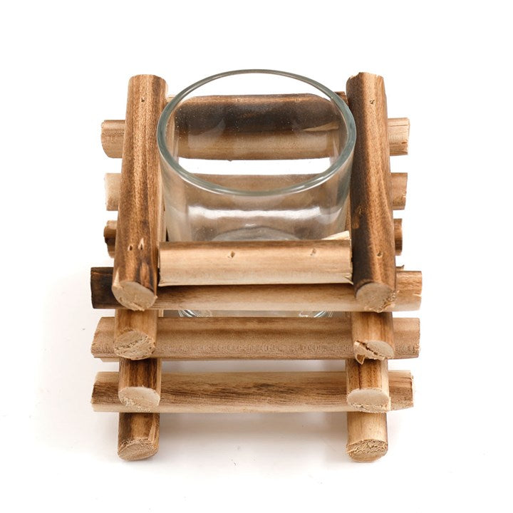 9cm Stacked Wood Tealight Holder