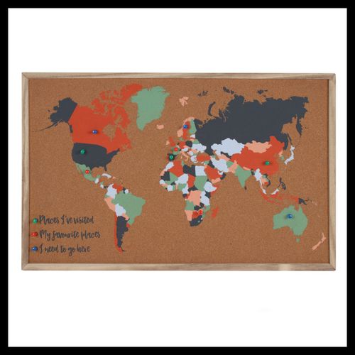 This cork board features a contemporary map design from our Adventure Awaits exclusive collection. Designed with travellers in mind, the map is perfect for marking places visited or adding travel photos, airplane tickets and other travel memorabilia to.Packaged Dimensions: H42cm x W7cm x D1.5cm"