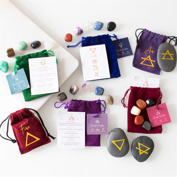 Aquarius, Gemini and Libra are signs ruled by the element of air and are known to be intellectual and highly social. This stunning set of 5 elemental tumblestones includes Lapis Lazuli for communication, Amethyst for energy, Labradorite for protection, Fluorite for intuition and Tiger Eye for improving mood. Beautifully presented in a protective velvet drawstring bag with hang tag and informative insert card. Product Dimensions: H10cm x W7cm x D2cm Packaged Dimensions: H10cm x W7cm x D2cm