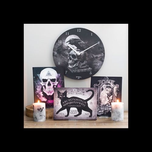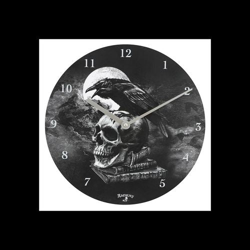 Designed by Alchemy London, this 34cm wall clock features the 'Poe's Raven' design inspired by the mysterious and macarbe stories of Edgar Allan Poe. Requires 1 x AA battery to operate which is not included. Product Dimensions: H34cm x W34cm x D2.5cm Packaged Dimensions: H35cm x W35cm x D4.5cm