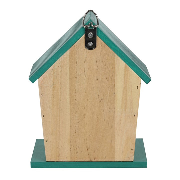 This wooden bird house will welcome feathered friends, protecting them in the winter and encouraging nesting in the spring. Place food inside to attract small birds and fill the garden with cheerful chirping songs. Features an adorable hanging sign with 'All Birds Welcome' text. Plywood and MDF, with a sawtooth hanger on the back. Product Dimensions: H20.5cm x W16cm x D12cm Packaged Dimensions: H22cm x W17cm x D13cm