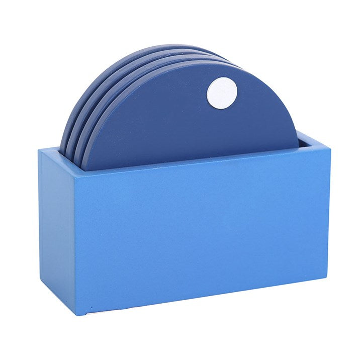 This trendy set of coasters includes 4 All Seeing Eye designs in a matching blue holder. Perfect for any quirky home!