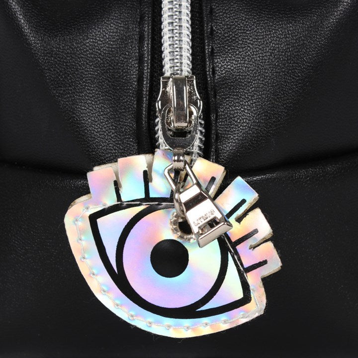 Matte black makeup bag featuring the words 'I like my eyelashes as black as my soul'. Product Dimensions: H14cm x W25cm x D13cm Packaged Dimensions: H17cm x W30cm x D2cm