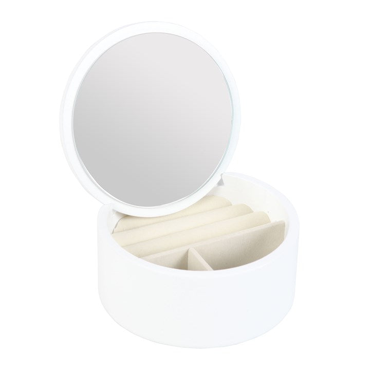 Store precious necklaces, rings and bracelets in this beautiful white jewellery box, decorated with an astrology wheel design and featuring a handy mirror in the lid - perfect for checking if accessories match the the look! As well as offering safe-keeping for your treasures, this wooden jewellery box also offers a pretty way to enhance dressing tables or bedside tables as a finishing touch to bedroom decor.