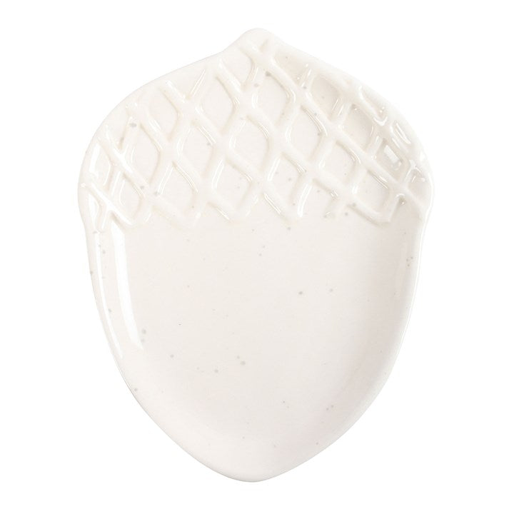 This ceramic dish is the perfect accessory for adding a touch of the autumn season to the home. This dish is delicately shaped like an autumn acorn, with a versatile design ideal for holding small trinkets, jewellery, or even serving as a decorative accent on any tabletop or dresser.