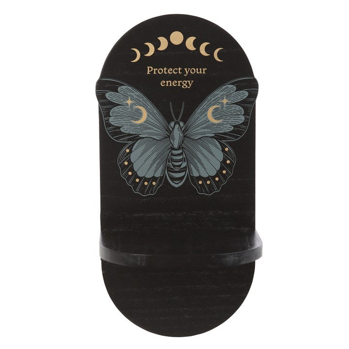 Create a space to recentre and focus with this black moth wooden altar shelf. Display crystals, tarot cards, words of affirmation and other items of spiritual significance to aid in manifesting dreams and goals.