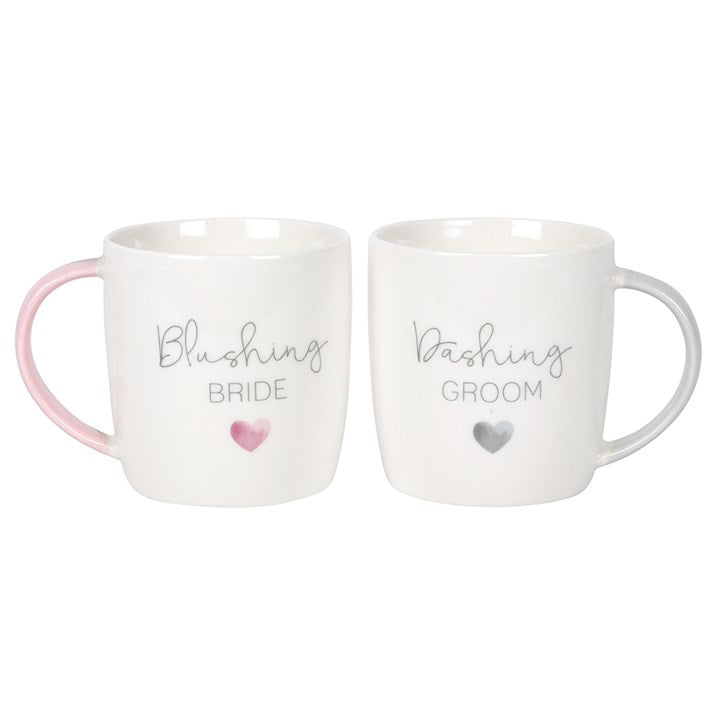 Engaged couples and newlyweds will appreciate this sweet mug set meant just for them. 'Blushing Bride' and 'Dashing Groom' text is accented by pastel pink and light grey, making it a perfect wedding gift to celebrate a happy couple. Microwave and dishwasher safe. Product Dimensions: H9cm x W12cm x D8.5cm Packaged Dimensions: H9.5cm x W25cm x D10.5cm