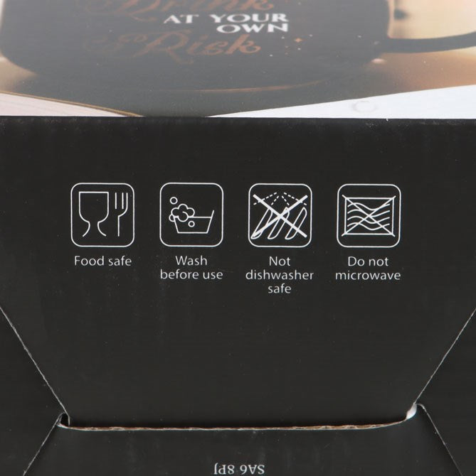 Bold and mischievously charming, this oversied teacup-shaped mug has a 'Drink at Your Own Risk' design. It's a statement piece that offers a playful warning to anyone who dares borrow your mug without permission. Handwash only. Not suitable for microwave use. 360ml.