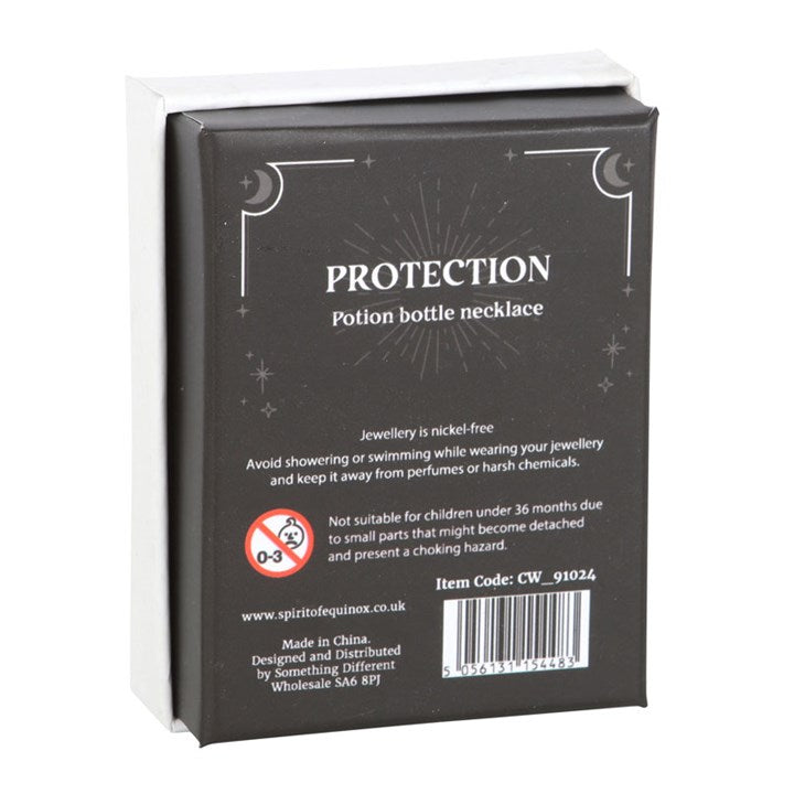Give the gift of crystal magic with this miniature potion bottle necklace. With natural black obsidian chips and a cork stopper, this necklace serves as a spellbinding accessory while repelling negative energies and promoting stability. Presented in a matching gift box and perfect for that special witch in your life. Plastic bottle on a nickel-free stainless steel chain.