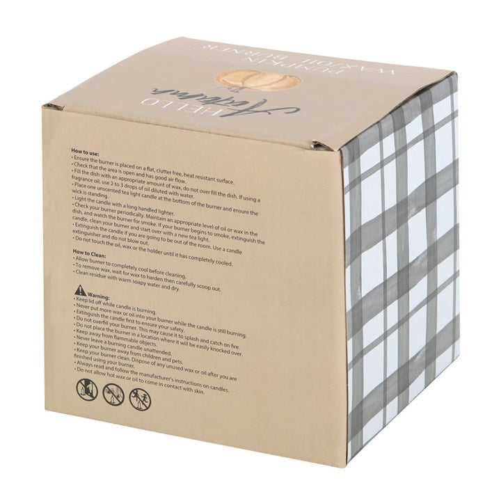 Create a cosy mood this autumn with this elegant pumpkin oil burner / wax warmer. Simply place a lit tealight inside and add your favourite fragrance oil or wax melt under the lid. Please practice caution while burning and never leave unattended.
