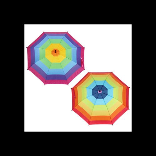 Brighten up even the most gloomiest of days with this practical and stylish rainbow striped umbrella. Features a curved handle and velcro strap. Product Dimensions: H67cm x W88cm x D88cm Packaged Dimensions: H67cm x W9cm x D9cm