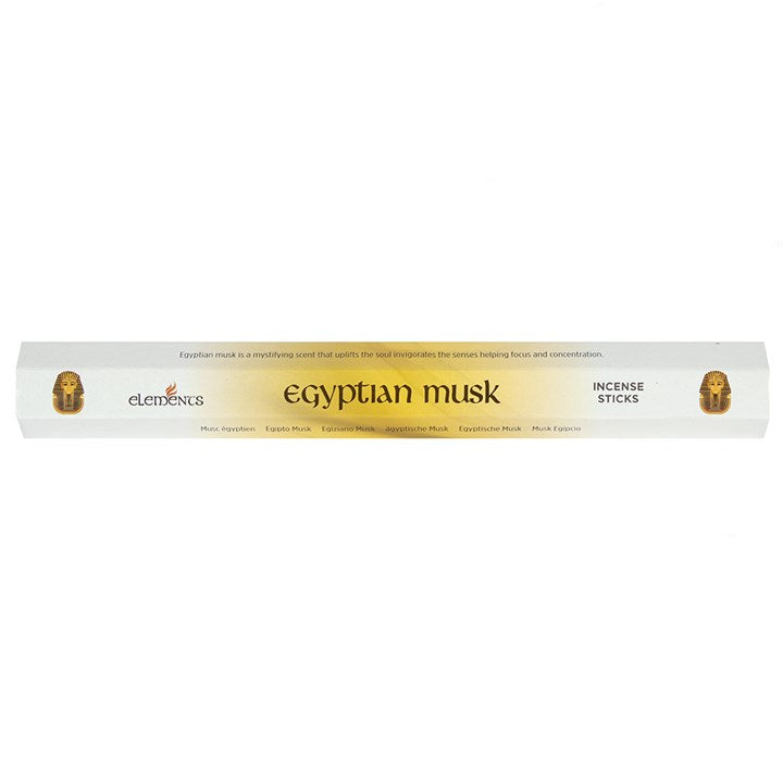 A box of 6 packs of Egyptian Musk fragranced incense sticks by Elements. Each pack contains 20 incense sticks. Product Dimensions: H2.5cm x W24cm x D3cm Packaged Dimensions: H5.5cm x W25cm x D9cm