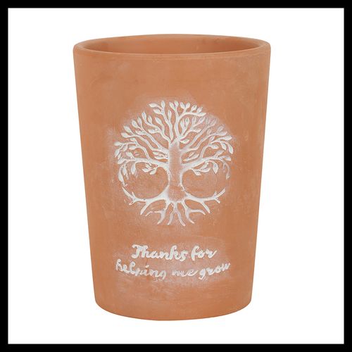 This terracotta plant pot features a stunning Tree of Life design and 'Thanks for helping me grow' text accented by a white-washed finish. Makes a sweet and meaningful gift for teachers and Mother's Day. Packaged Dimensions: H17cm x W13cm x D13cm