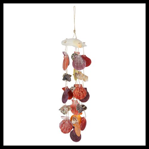 This beachy mobile features 6 strings of coloured shells hanging from a clamshell. Great for traditional seaside decor both inside and out. Approximately 30cm long. Product Dimensions: H36cm x W8cm x D3.5cm Packaged Dimensions: H18.5cm x W15.5cm x D3.5cm