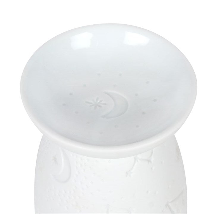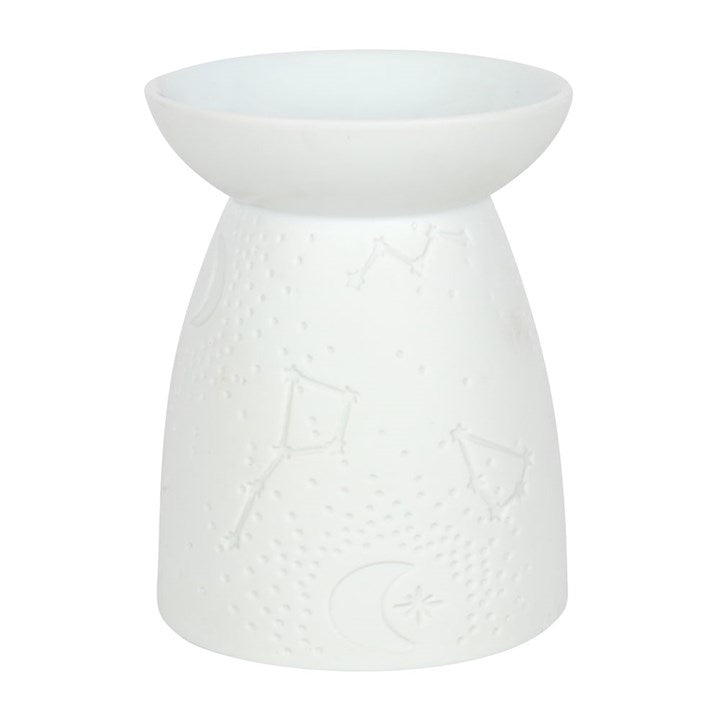 Timeless and elegant, this matte white oil burner features a pretty star constellation design which is softly illuminated when a lit tealight candle is placed inside. Use with your favourite fragrance oils or wax melts to add beautiful scents to your home. Product Dimensions: H12.5cm x W9.5cm x D9.5cm Packaged Dimensions: H14.5cm x W11.5cm x D11.5cm